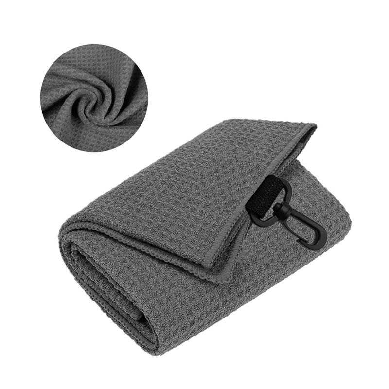 Microfiber golf towel's concave and convex honeycomb texture (waffle) on the surface further increases the surface area, improves water absorption efficiency, and quickly wipes away sweat on the club or skin.