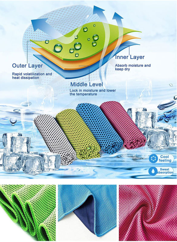 Using special processes (such as cool fibers or adding mineral cool ingredients), microfiber cooling towel can quickly absorb body heat when in contact with the skin, producing an immediate cool feeling, especially in high temperature environments.