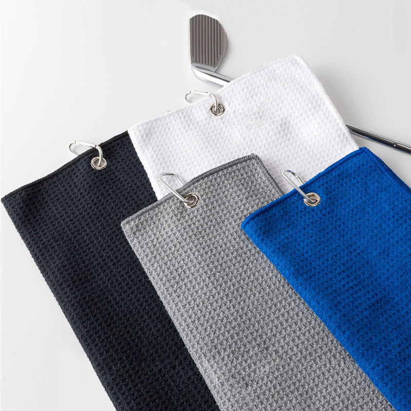 Microfiber golf towel's concave and convex honeycomb texture (waffle) on the surface further increases the surface area, improves water absorption efficiency, and quickly wipes away sweat on the club or skin.